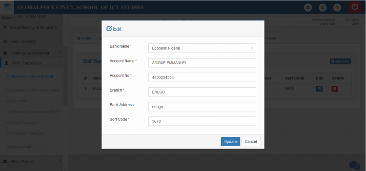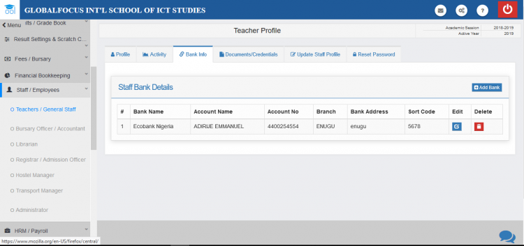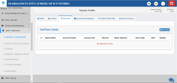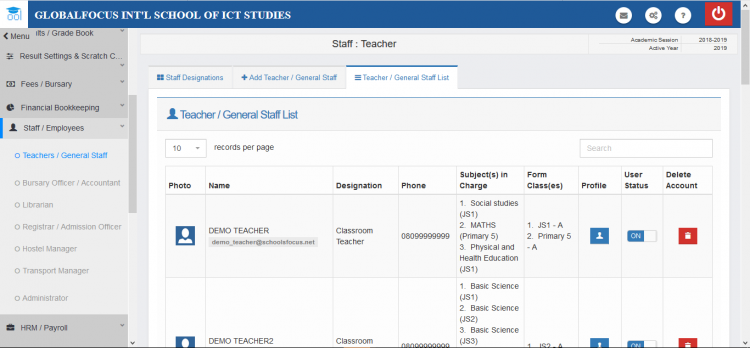 3. Click on Teachers / General Staff. You should see the figure below which shows the list of staff members