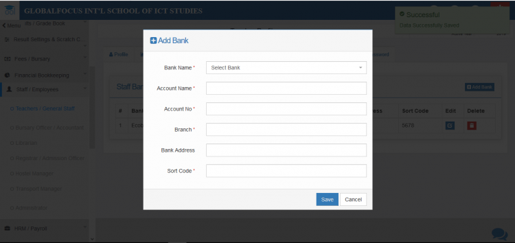 Uploading the staff salary account details make it easy to make payments to them. To upload a staff's account details, follow the below steps.
