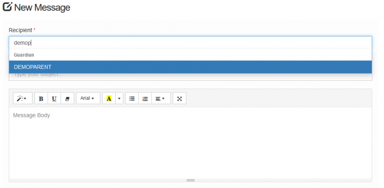 - In the recipient box, type the name of the parent you wish to comunicate to