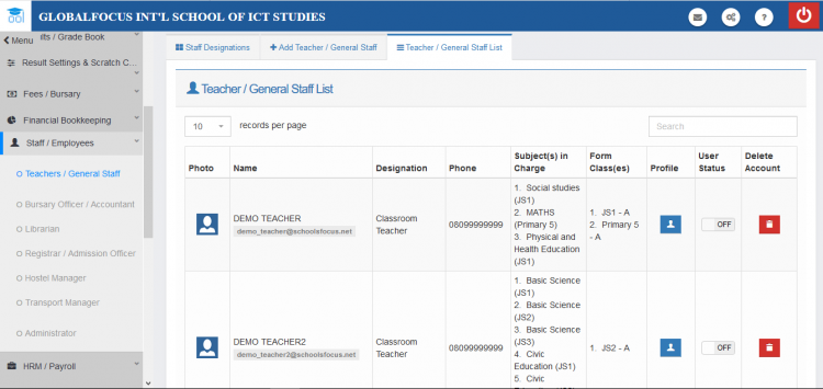 1. Under the Staff / Employees menu, navigate to the staff's profile
