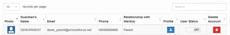 From the dasbhboard, click the guardians/parents menu on the right to see the list of parents currenty in the system.