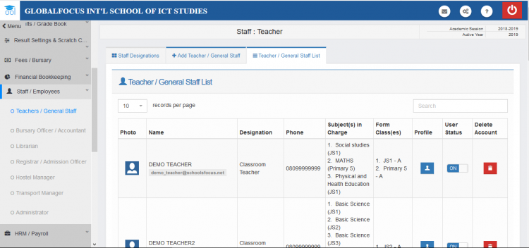 1. Under the Staff / Employees menu, navigate to the staff's profile