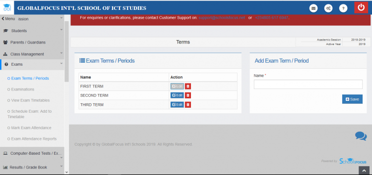 2. Under the Add Exam Term/Period panel, enter the name of the term and click save.