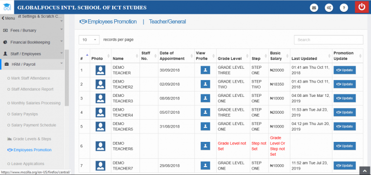 3. Find the target employee and click the update link next to his profile. In the case of long lists, you may use the search box to find the employee quickly.